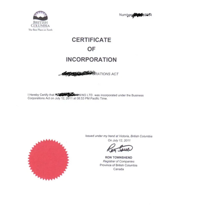(加拿大公司注冊(cè)證書樣本)